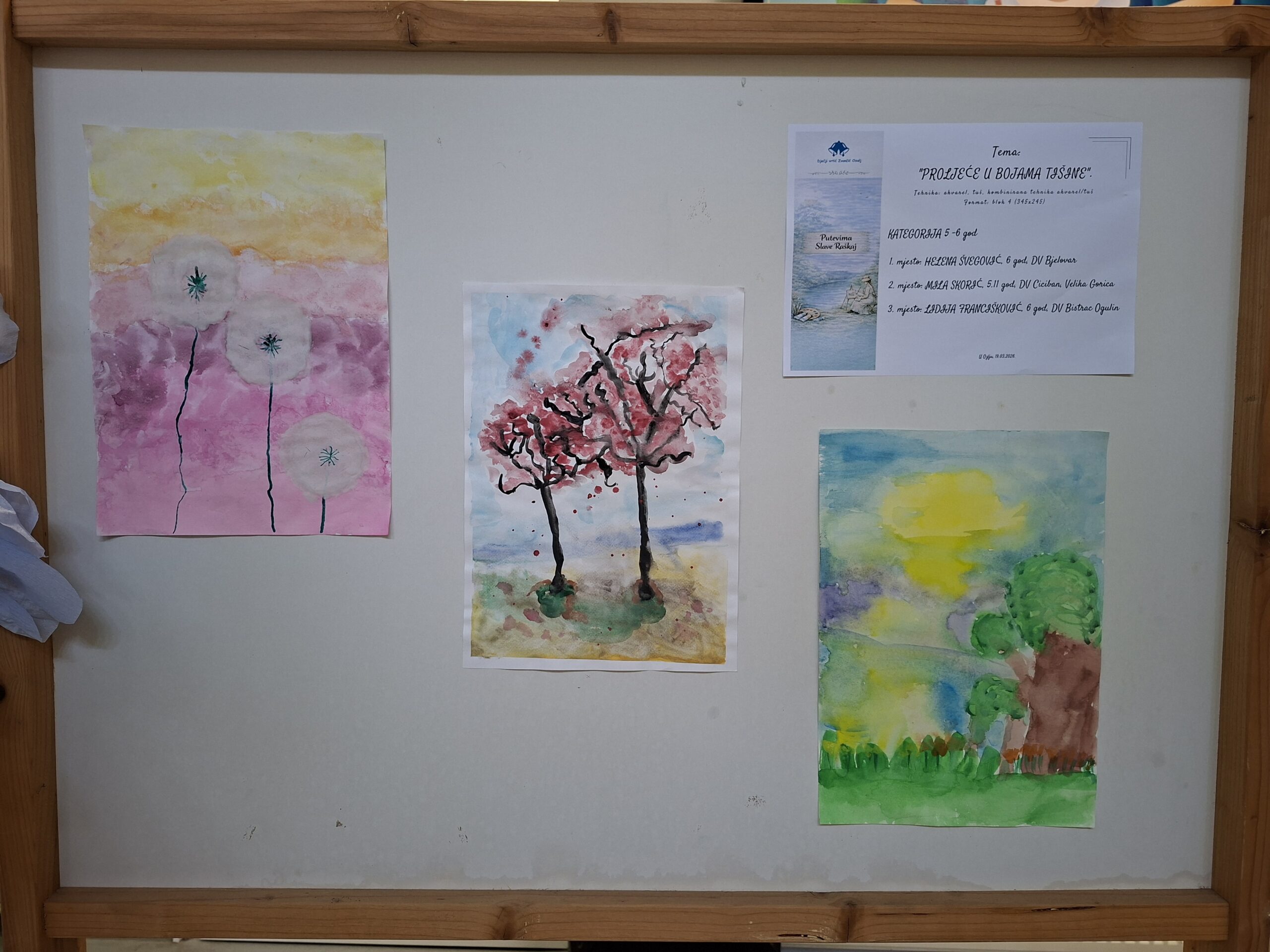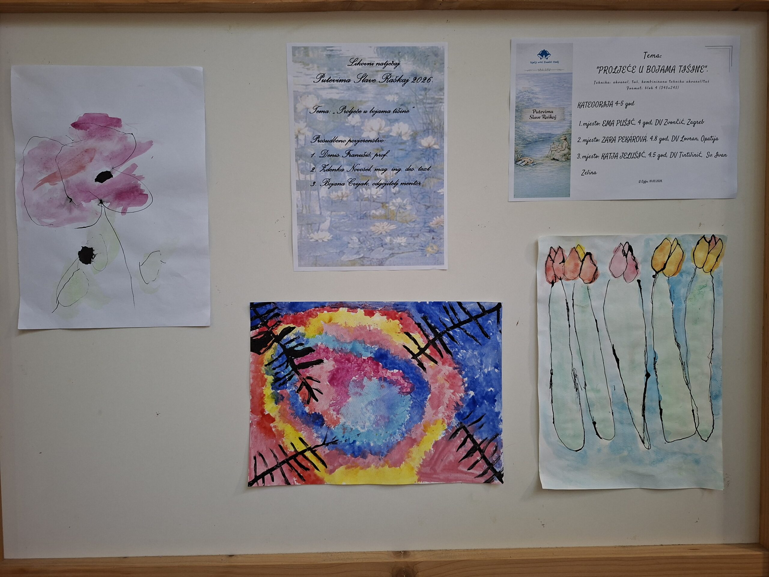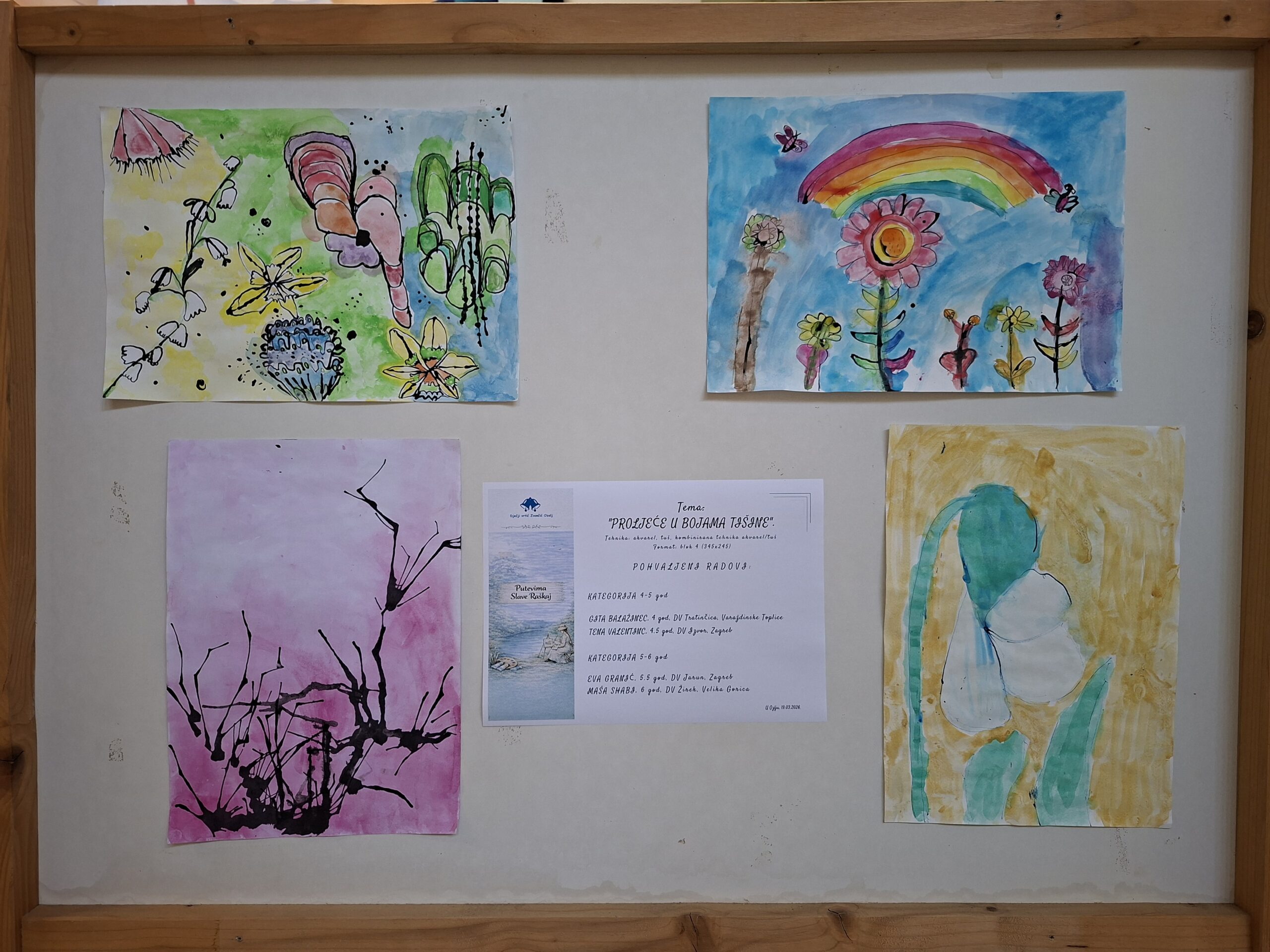 Ovogodišnji natječaj nadmašio je sva očekivanja – pristiglo je više od 550 dječjih radova iz čak 59 vrtića iz cijele Hrvatske, ali i iz Slovenije, Turske i Poljske. Djeca su kroz tehnike akvarela, gvaša i kombinacije akvarela i tuša na poseban način izrazila svoj doživljaj prirode, tišine i proljetnih promjena.